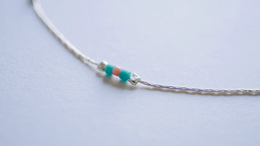 Lot de 4 Bracelets minimaliste, fin - Chaine serpent - Perles miyuki turquoise, corail, rose - Argent 925