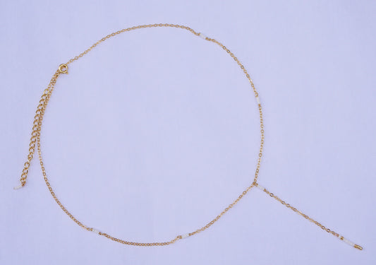 Collier sautoir long Y - Plaqué Or - Perles de verre Miyuki blanches - Chaîne fine - Collier lasso - Collier cravate - Minimaliste - Fin