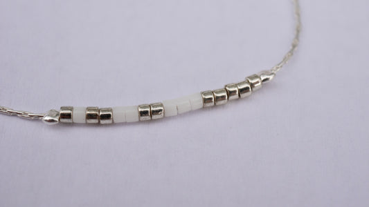 Parure collier + bracelet - Argent 925 - Chaine serpent fine - Perles de verre Miyuki blanches et argentés - Bijoux mariage - Minimaliste