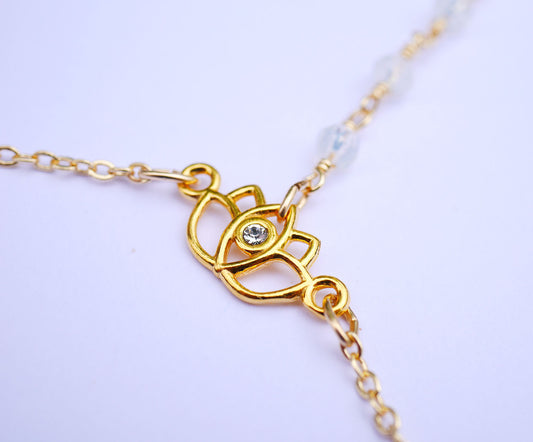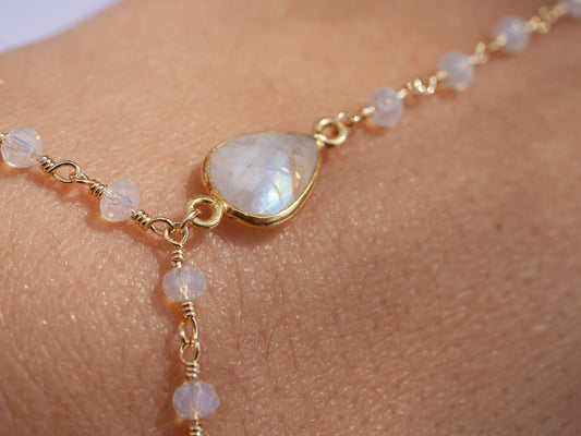 • Bijoux de main Angélique - Goutte pierre de lune - Chaîne rosaire - Plaqué Or