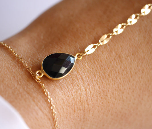 Bijoux de main Athena - Goutte pierre Onyx Noir - Plaqué Or