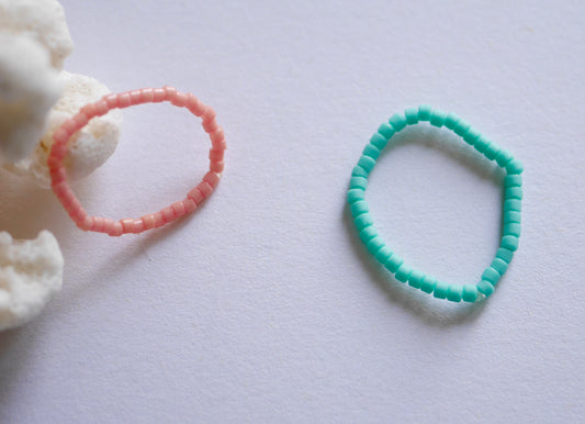 Bague Brenna - élastique - Perles pierre Corail - Empilable