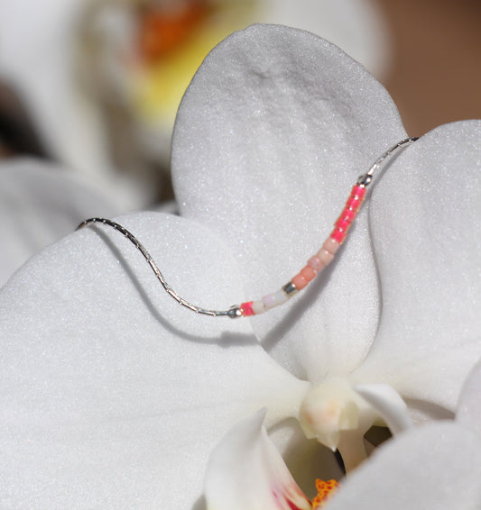 Bracelet Nymphéa - Double-tours - Perles miyuki rose dégradé - Chaîne serpent - Argent 925
