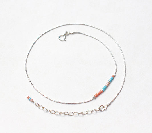 Bracelet Nymphe - Perles Miyuki Corail, Rose - Perles Pierre Turquoise - Chaîne serpent - Argent 925