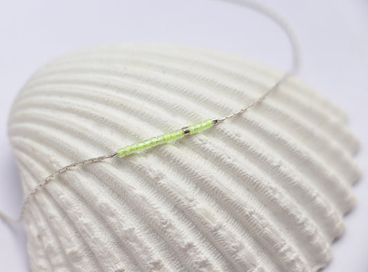 Bracelet Nymphéa - Double rangs - Perles miyuki jaune fluo - Chaîne serpent - Argent 925