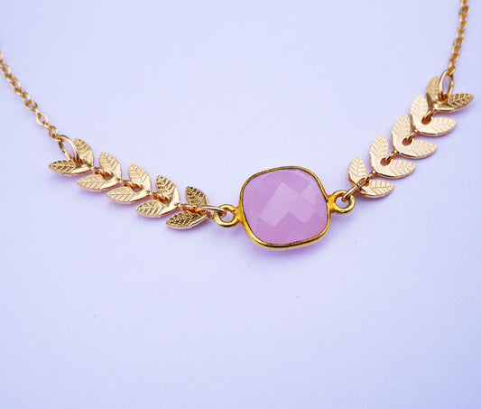 Bracelet Bégonia - Pierre Calcédoine - Rose pastel - Chaîne épis - Plaqué Or