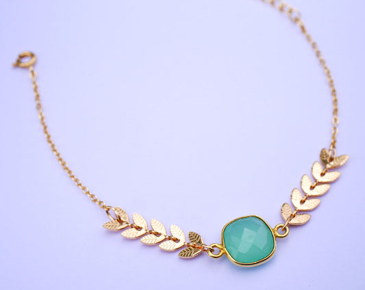 Bracelet Bégonia - Pierre Calcédoine vert d'eau - Chaîne épis - Plaqué Or