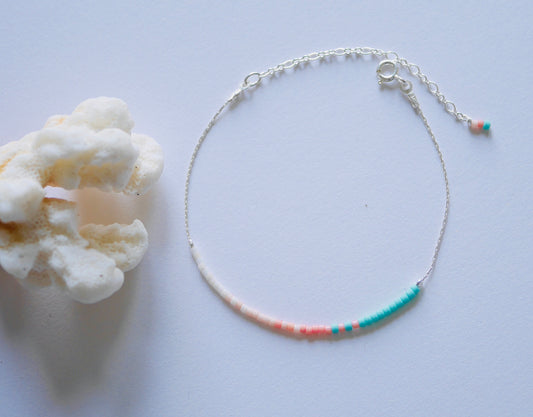 Bijoux de main Uhaina- Perles Miyuki dégradé Corail,rose,blanc - Perles pierre Turquoise naturelle - Argent 925