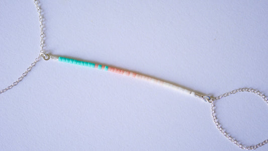 Lot de 6 Bracelets + 1 bijoux de main + 2 bagues - Chaine serpent - perles miyuki turquoise, corail, rose - Argent 925