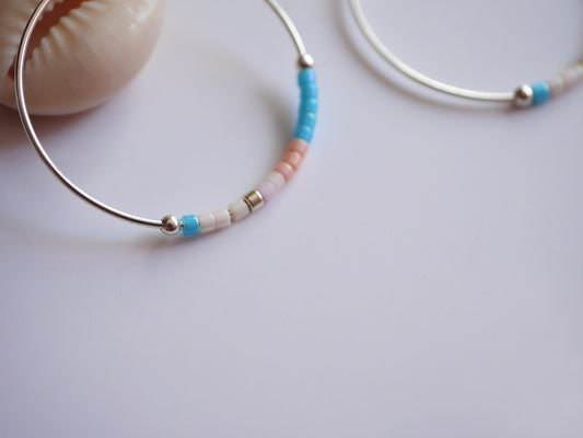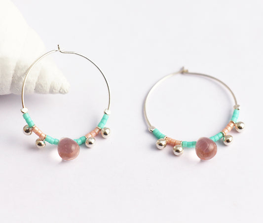 Boucles d'oreille Alysse - Créoles - Perles miyuki Turquoise et Rose pastel - Argent 925
