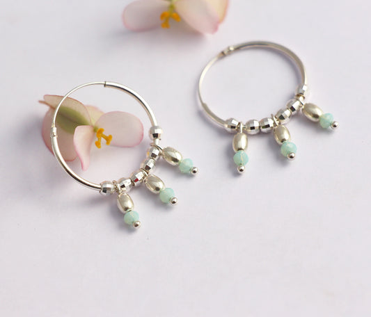 Boucles d'oreille Eglantine - Créoles - Perles de verre Menthe - Argent 925