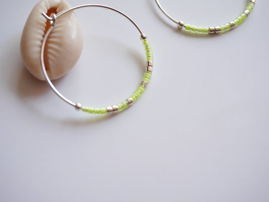 Boucles d'oreille Alysse - Créoles - Perles miyuki jaune fluo - Argent 925