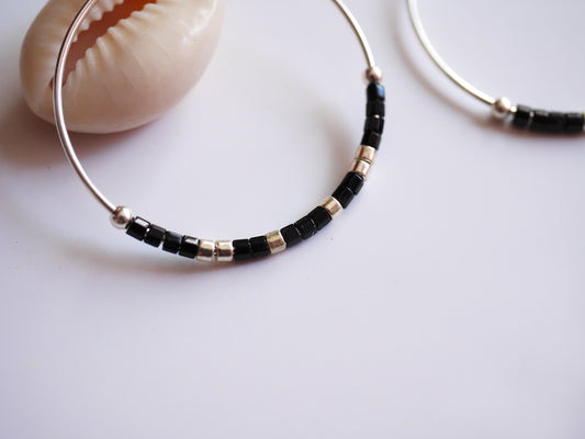 Boucles d'oreilles Alysse- Créoles - Perles miyuki noires - Argent 925