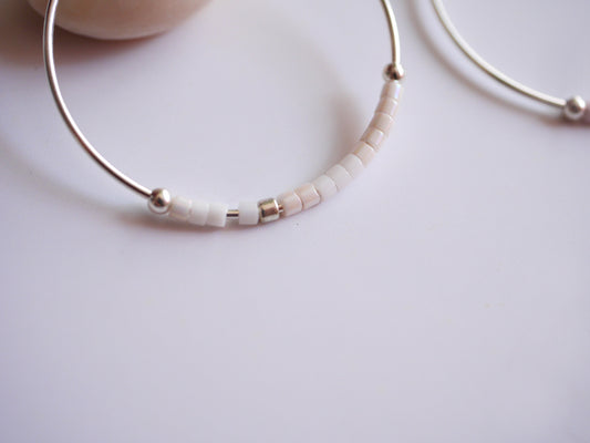 Boucles d'oreille Alysse - Créôles - Perles miyuki blanches - Argent 925