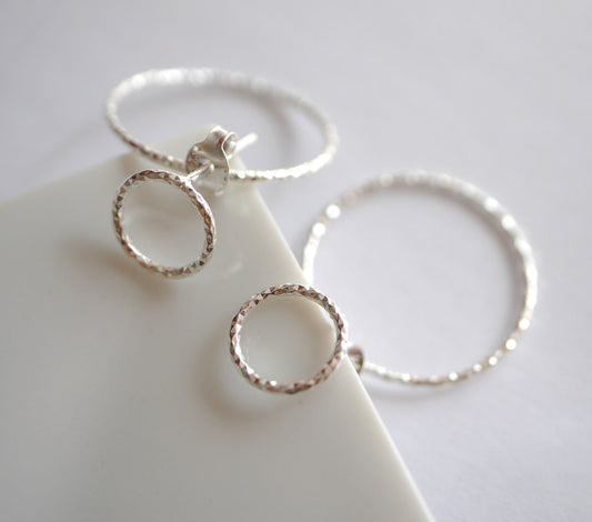 Boucles d'oreilles Agatha - Cercle martelé double - Avant-Arrière - Argent 925