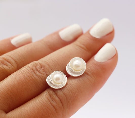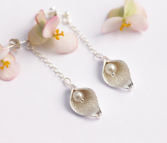 Boucles d'oreille Arum Blanc - Perles d'eau douce blanches - Argent 925