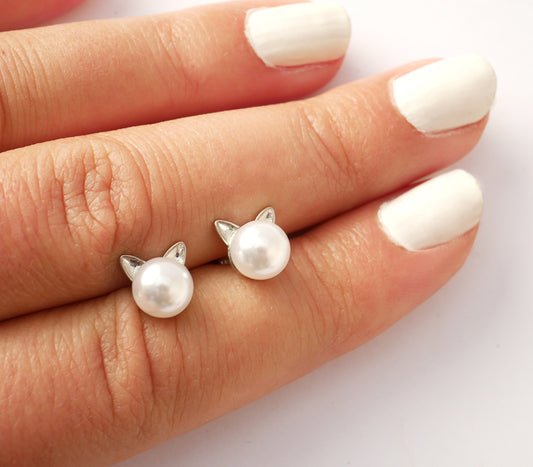 Boucles d'oreille Cat - Puce chat - Argent 925 - Perle d'eau douce