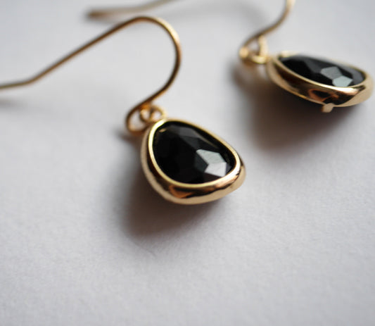 Boucles d'oreilles Ovo - Pierre de verre Noir - Plaqué Or