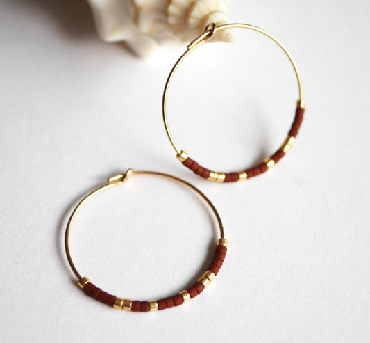 Boucles d'oreilles Alysse - Créôles - Perles miyuki Bordeaux et Doré - Plaqué Or