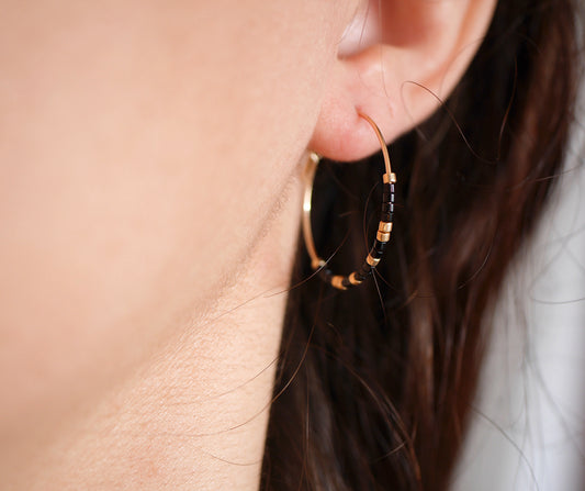 Boucles d'oreilles Alysse - Créoles - Perles Miyuki Noir et Doré - Plaqué Or