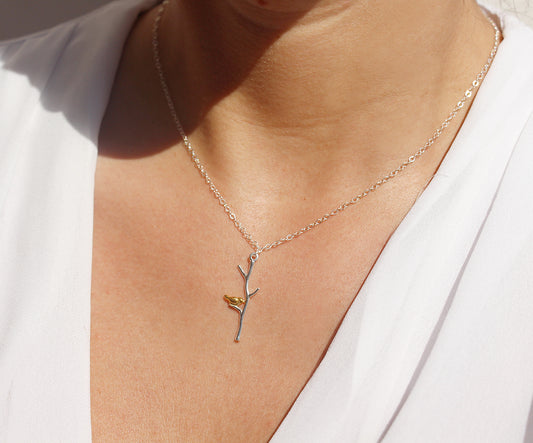 Collier Uccello - Oiseau sur la Branche - Argent 925 et doré