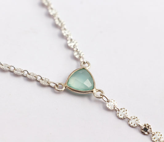 Collier Chenoa - Collier Cravate - Pierre calcédoine vert d'eau - Menthe - Argent 925