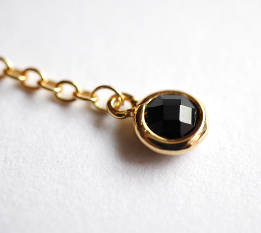 Collier Perséphone - Y - Cravatte - Pierre noire - Plaqué Or