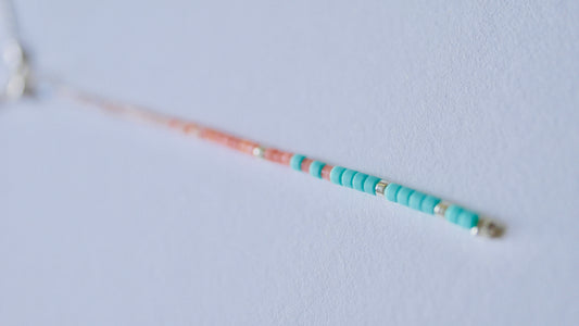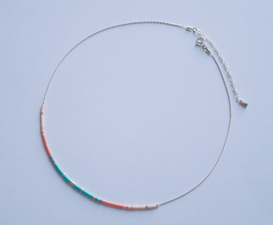 Collier Chennaï - Sautoir Y - Pierres de turquoise - Perles miyuki Corail / Rose / Blanc Cravate - Argent 925