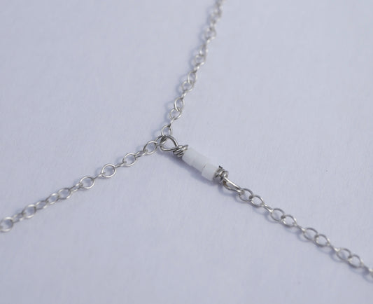 Collier sautoir long Y - Plaqué Or - Perles de verre Miyuki blanches - Chaîne fine - Collier lasso - Collier cravate - Minimaliste - Fin