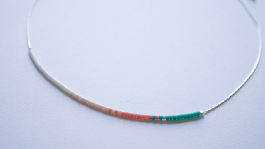 Collier Nymphe - Perles Miyuki dégradé de Corail - Perles pierre de Turquoise - Chaîne serpent - Argent 925