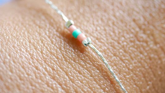 Bracelet Haryana - chaine serpent - Bracelet ultra fin - perles miyuki turquoise et corail - Argent 925
