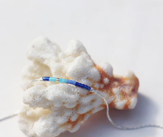 Bracelet Nymphéa - Double tours - Perles miyuki bleu dégradé - Chaîne serpent - Argent 925